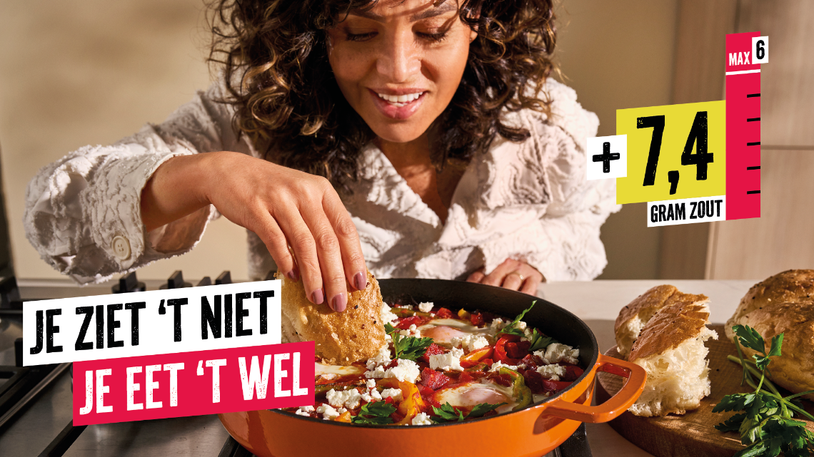 De meeste Nederlanders eten ongemerkt te veel zout. Het zit verstopt in producten die je elke dag eet: bewerkt vlees, kaas, vleeswaren, sauzen, soepen, vleesvervangers en kant-en-klare maaltijden. Maar liefst 84 procent van onze zoutinname komt uit dit soort producten. Slechts 16 procent komt uit het zoutvaatje. Daarom start de Nierstichting de campagne ‘Je ziet ’t niet, je eet ’t wel'.