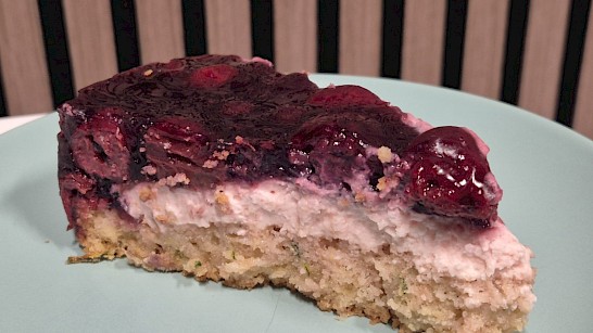 Ontdek het recept voor onze favoriete traktatie op kantoor: courgettecake met romige puddingvulling en frisse bosvruchtentopping. Een verrassend luchtige en feestelijke taart!